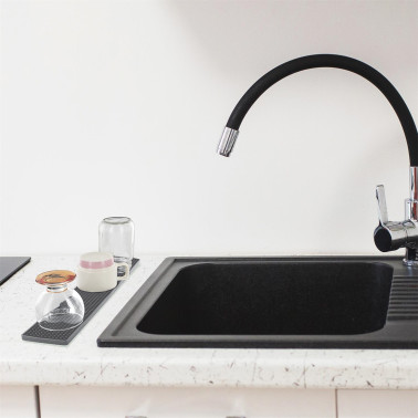 Małe przestrzenie pokochają tę długą matę ociekową. Umieść ją za zlewem kuchennym, aby zaoszczędzić jeszcze więcej miejsca. - Szybkie suszenie - Łatwe czyszczenie - Specjalna do szklanek i kubków