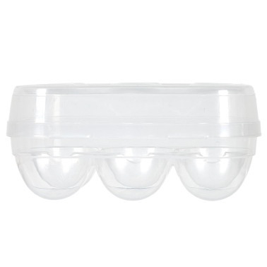 Pojemnik na 6 jajek wykonany został z tworzywa sztucznego. Pojemnik zamykany z przegródkami gwarantuje bezpieczny transport jajek oraz przechowywanie ich w lodówce.