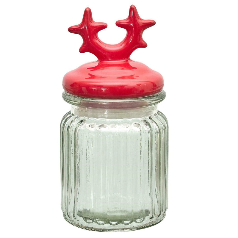 Szklany słoik z przykrywką w kształcie rogów renifera to idealny dodatek zdabiający nasz dom podcas świąt Bożego Narodzenia. Słoik sprawdzi się podczas przechowywania cukru, kawy czy orzechów. Słoik wykonany ze szkła, przykrywka natomiast została wykonana z ceramiki. Słój wyposażony został w silikonową uszczelkę. Pojemność 125ml