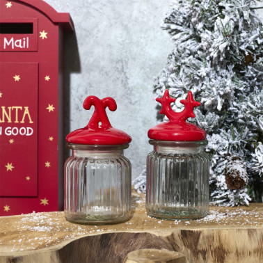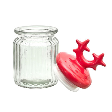Słoik z pokrywką w kształcie rogów czerwonych