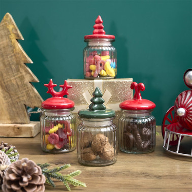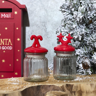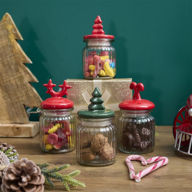 Szklany słoik z przykrywką w kształcie cukrowych lasek to idealny dodatek zdabiający nasz dom podcas świąt Bożego Narodzenia. Słoik sprawdzi się podczas przechowywania cukru, kawy czy orzechów. Słoik wykonany ze szkła, przykrywka natomiast została wykonana z ceramiki. Słój wyposażony został w silikonową uszczelkę. Pojemność 125ml