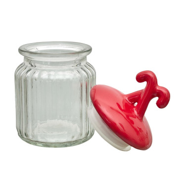Słoik z pokrywką w kształcie lasek czerwonych