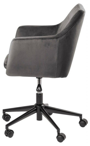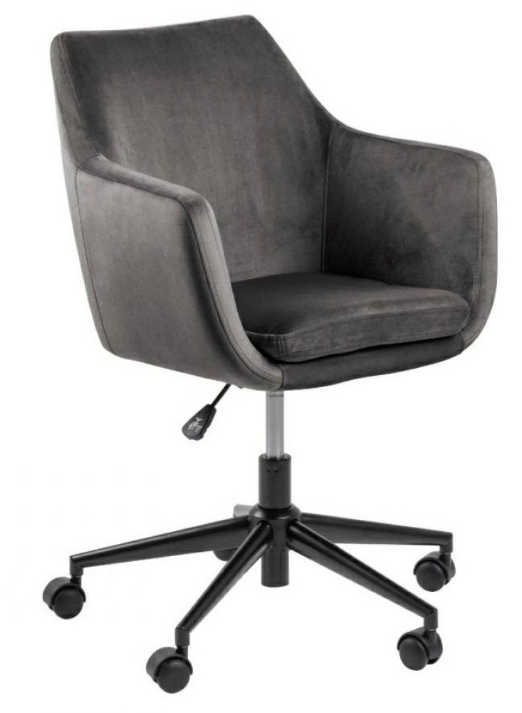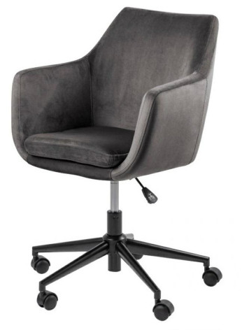 Fotel biurowy na kółkach Nora to stylowy fotel tapicerowany welurową tkaniną. Niezwykle popularny trend pomkazuje, że tkaniny welurowe prezentują się niesamowicie zarówno na meblach wypoczynkowych jak i biurowych.Siedzisko wyłożone wysokoelastyczną gąbką, tapicerowane tkaniną VIC, posiada zdejmowaną poduszkę. Metalowa podstawa na kółkach pomalowana została na kolor czarny. Kółka wykonane zostały...