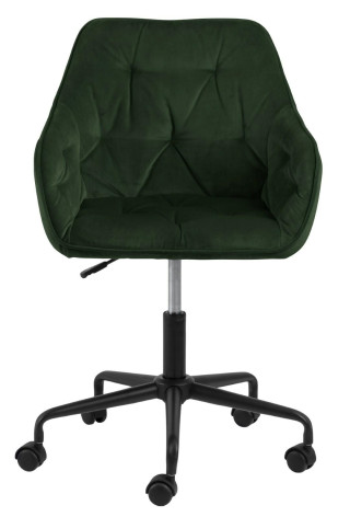 Fotel biurowy Brooke to idealny mebel do nowoczesnego i niesztampowego biura. Fotel biurowy z podłokietnikami to przede wszystkim wygoda i komfort. Pikowane siedzisko swoją miękkość zawdzięcza piance tapicerskiej o gęstości 21kg/m3. Tkanina, którą obszyto fotel to VIC fabric Forest green 68AC. Welwetowa tkanina charakteryzuje się niezwykle miłą w dotyku strukturą. Jest ona odporna na ścieranie....