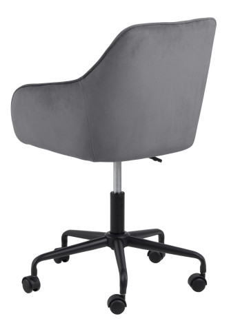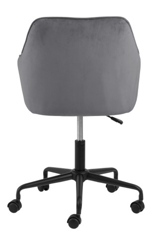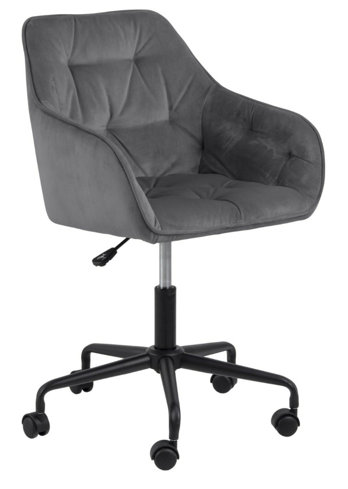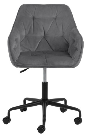 Fotel biurowy Brooke to idealny mebel do nowoczesnego i niesztampowego biura. Fotel biurowy z podłokietnikami to przede wszystkim wygoda i komfort. Pikowane siedzisko swoją miękkość zawdzięcza piance tapicerskiej o gęstości 21kg/m3. Tkanina, którą obszyto fotel to VIC fabric dark grey 28. Welwetowa tkanina charakteryzuje się niezwykle miłą w dotyku strukturą. Jest ona odporna na ścieranie. Pięcioramienna podstawa fotela na kółkach została pomalowana proszkowo na czarno. Matowe wykończenie dodaje całości klasycznego wyglądu. Fotel ma regulowaną wysokość aż o 9,5cm. Wysokość oparcia 37 cm Szerokość siedzenia 41 cm Głębokość siedzenia 40.5 cm Wysokość siedzenia maks. 55.5 cm Wysokość siedzenia min. 46 cm Wysokość podłokietnika od podłogi 63 cm Szerokość podłokietnika 4 cm Głębokość podłokietników 35 cm Wysokość podłokietnika 19 cm Wymiary opakowania: 57x53x61 cm Waga: 11 kg