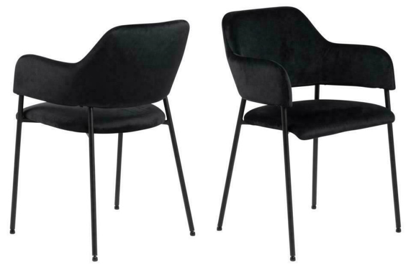 Zestaw 2 krzeseł Lima welurowych z podłokietnikami czarne