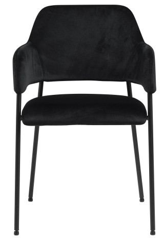 Zestaw 2 krzeseł Lima. Krzesło z podłokietnikami Lima to elegancki model, dzięki któremu twoja jadalnia nabierze niepowtarzalnego charakteru. Na podstawie wykonanej z malowanego proszkowo metalu spoczywa siedzisko z elastycznej pianki poliuretanowej tapicerowane tkaniną Dublin fabric black 50. Nóżki krzesła są od spodu zabezpieczone nakładkami. Mebel posiada podłokietniki wyprofilowane wraz z oparciem z jednego elementu. Wysokość podłokietników od podłogi 69cm Wymiary: 54x55x82cm Waga: 7,1kg
