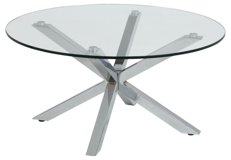 Stolik kawowy Heaven jest jednym ze stolików z tej serii. Stolik powstał z ciekawego połączenia szkła oraz chromowanej stali. Blat stolika o grubości 10 mm został zrobiony z transparentnego szkła w kształcie koła. Podstawa stolika to cztery stalowe chromowane nogi. Nogi stolika zostały tak skonstruowane