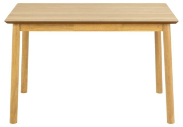Stół jadalny prostokątny Barlow, blat ozdobiony lakierowanym fornirem dębowym. Podstawa matowe drewno kauczukowe lakierowane AC, Fornir blatu to dąb bejcowany, z prostym usłojeniem, Wymiary stołu: 120x80x74,8 cm. Przesrzeń od dolnej częsci blatu do podłogi; 66,5cm. Nogi stołu zabezpieczone plastikowymi stopkami. Wymaga montażu. Maksymalne obciążenie 100kg. Wymiary kartonu: 129x85,8x11cm. Waga...