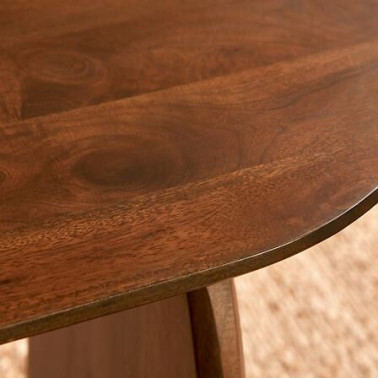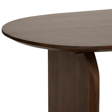 Materiał: drewno drzewa akacji zabejcowane na kolor ciemny brazowy. Wymaga montażu. Max. obciążenie 60kg na stolik Blat: kształt owalny Blat i nogi: lita akacja Wykończenie: matowe Odległość między nogami: dł. 110 cm Wysokość pod blatem: wys. 73 cm Waga 75kg