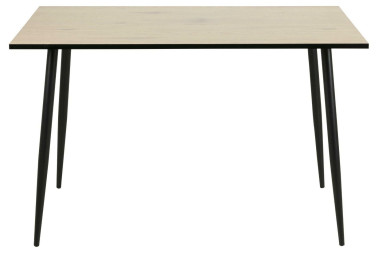 Stół Wilma to połączenie blatu w kolorze dzikiego dębu z metalową podstawą. Drewniany blat w okleinie imitującej dąb doskonale współgra z metalową, matową, malowaną proszkowo na kolor czarny podstawą. Boki blatu dla kontrastu zostały oklejone okleiną w kolorze i strukturze czarnego dębu. Stół sprawdzi się doskonale w każdym wnętrzu. Nadaje się do przestrzeni hotelowych, gastronomicznych oraz domowej jadalni czy salonu. Waga stołu: 19,5 kg Maksymalna ilość szt. w kartonie: 1