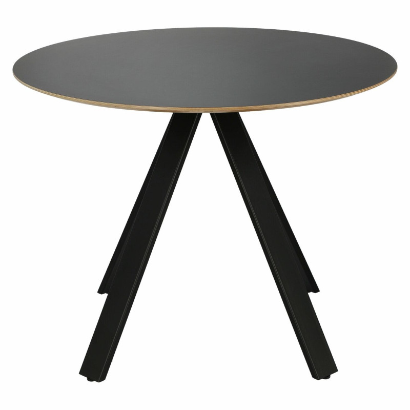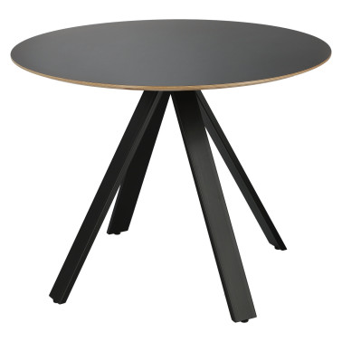 ściskanie i wyginanie niż inne drewnopochodne materiały. Dodatkowo sklejka od góry została pokryta czarnym laminatem, który komponuje się z czarną podstawą stołu. Sklejka to również produkt ekologiczny, w całości wykonany z drewna. Stół Mezzanotte wyposażony został w cztery eleganckie nogi wychodzące z jednego punktu pod blatem. Takie ułożenie elementów nie tylko zapewniło całości wyjątkową stabilność, ale także zadecydowało o jej oryginalnym wyglądzie. Podtrzymywany przez nóżki blat zachwyca swoim idealnie okrągłym kształtem oraz nietypowym wykończeniem brzegów. Brzegi w naturalnym kolorze zostały lekko ścięte od spodu, tworząc niebanalne wykończenie.