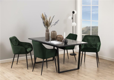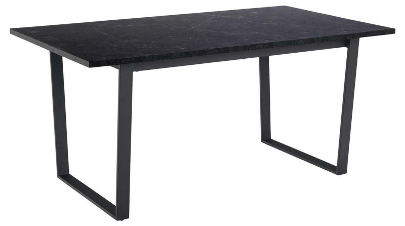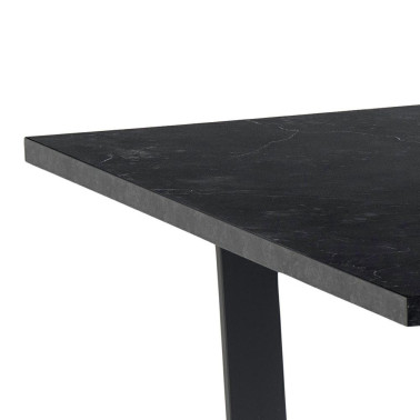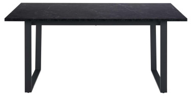 Nowoczesny, prostokątny stół Amble w stylu loftowy to ciekawy stół, który najlepiej komponuje się z krzesłami welwetowymi. Ciekawy blat z odpornego na zarysowania MDF, dodatkowo laminowanego okleiną imitującą czarny marmur idealnie współgra z czarną metalową podstawą. Proszkowo malowane, metalowe nogi stołu mają kształt płozy. Matowe wykończenie stołu będzie dobrze współgrać z wnętrzami loft lub industrialnymi. Stół Amble sprawdzi się do małego salonu lub jadalni. Stół Amble dzięki swojej prostej formie będzie idealny do krzeseł z podłokietnikami. Wymiary opakowania: 172x10,5x99,5cm Waga: 38kg