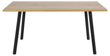 Industrialny stół Cenny urzeka swoja prostotą oraz matowym wykończeniem. Blat stołu to płyta meblowa z okleiną imitujacą dziki dąb. Cztery metalowe nogi o matowym wykończeniu zostały pomalowane proszkowo na czarno. Charakterystyczną cechą stołu są nogi, które nie tylko są lekko nachylone ale również odwrócone, co sprawia że stół wygląda nowocześnie Wymiary opakowania: 169x100x7cm i 83x23x13,5cm Waga: 23 i 6kg