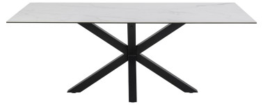 Duży stół Heaven będzie ozdobą Twojego domu oraz miejscem spotkań rodzinnych. Dzięki swojemu unikalnemu charakterowi, mebel wspaniale zaprezentuje się w każdej nowoczesnej jadalni czy kuchni. Idealnie sprawdzi się w aranżacjach industrialnych, loftowych, ale również w bardziej klasycznych wnętrzach, w których będzie stanowić wyjątkowy dodatek.Industrialny stół o pięknym ceramiczno-szklanym blacie oraz metalowej pomalowanej na czarno podstawie pozwoli na biesiadowanie w dużym gronie rodzinnym. Konstrukcja opiera się na metalowym stelażu o geometrycznej formie i zwieńczona jest blatem z białej ceramiki i szkła. Ze względu na swój duży rozmiar, stół pomieści komfortowo nawet 8 osób. Waga stołu: 77 kg Wymiary opakowania: 206x106x6 cm i 89x74x8 cm