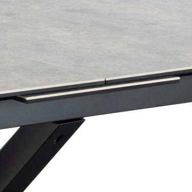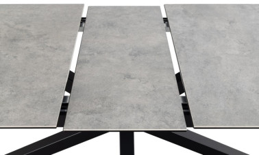 Ponieważ praktyczność i design często są równie ważne, jeśli chodzi o stoły do jadalni, ten stół z ukrytymi dodatkowymi blatami został stworzony nie tylko po to, by służyć swojemu celowi, ale także by cieszyć oko swoim estetycznym wykoaniem. Zaprojektowany z szarym ceramicznym blatem, jest elegancki, odporny na ciepło i zarysowania. Gdy masz gości, wystarczy delikatnie pociągnąć za koniec stołu, aby dodatkowy blat przedłużający wysunął się w połowie stołu. Szary ceramiczny blat odporny na wysoką temperaturę i zarysowania Synchronicznie wysuwany blat z dopasowanej ceramiki. Chowany dodatkowy blat, gdy nie jest używany. Stalowa podstawa krzyżowa malowana proszkowo na czarno. Wygodne miejsce dla 8 osób przy złożonym i 10 osób przy rozłożonym blacie. Wymaga montażu Karton: 208x108x12,5cm, waga: 96kg i 70x108x7,8cm i 17 kg